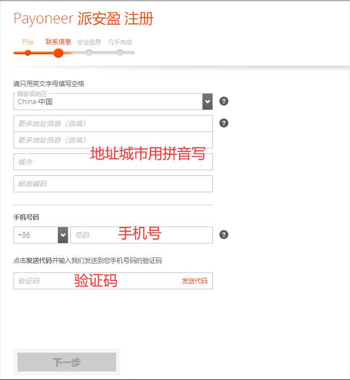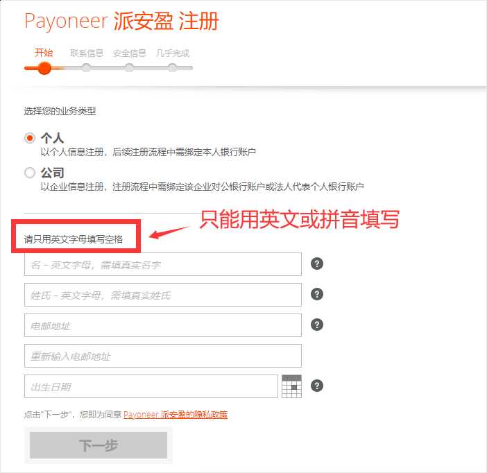 Payoneer 注册流程有 4 个步骤: