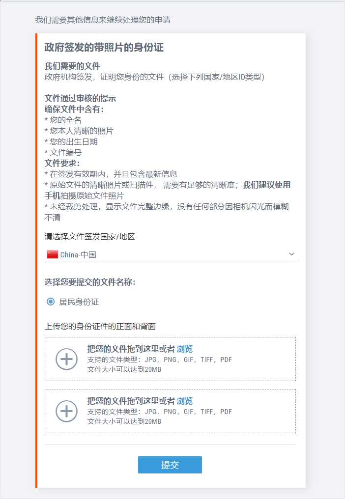 第6步:提交身份证文件