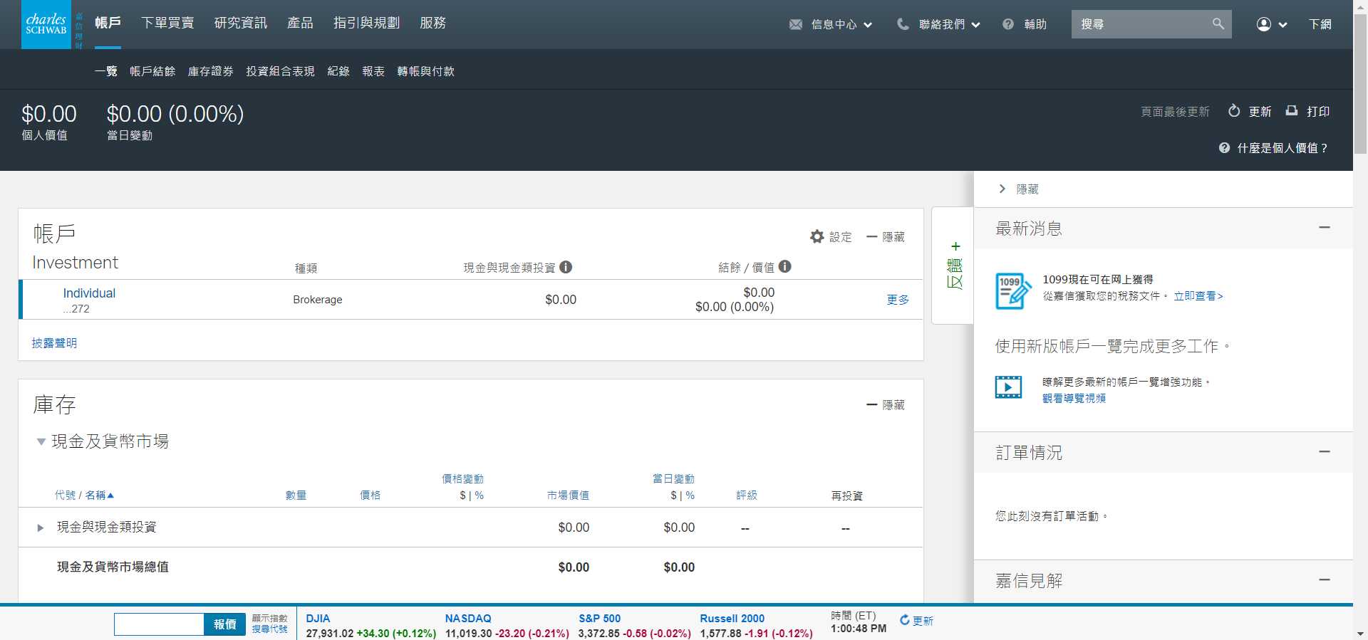 点击"繼續嘉信網站" 这样就可以进入账户里面了。