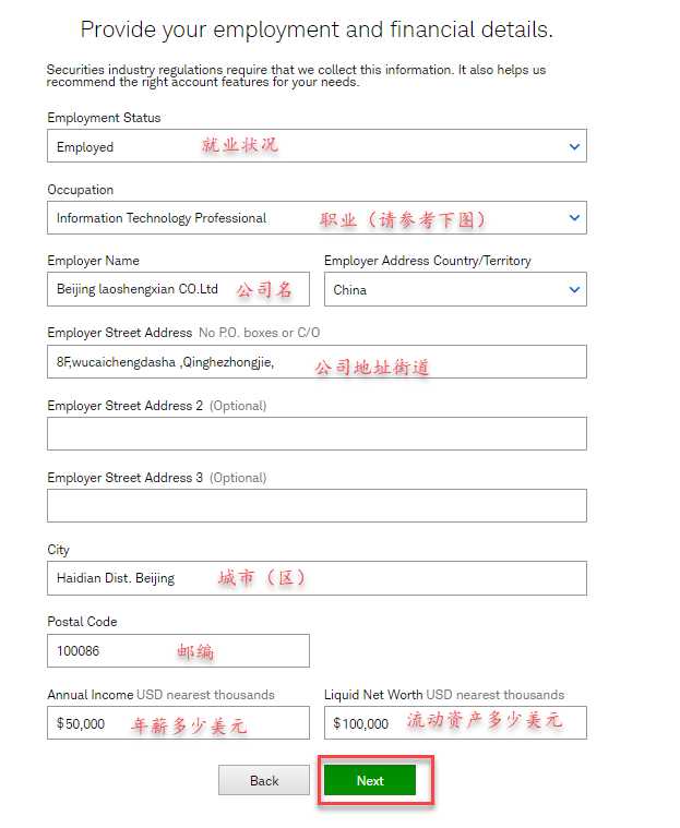 职业(Occupation)请参考下图的翻译,公司名和公司地址,年薪,流动资产,