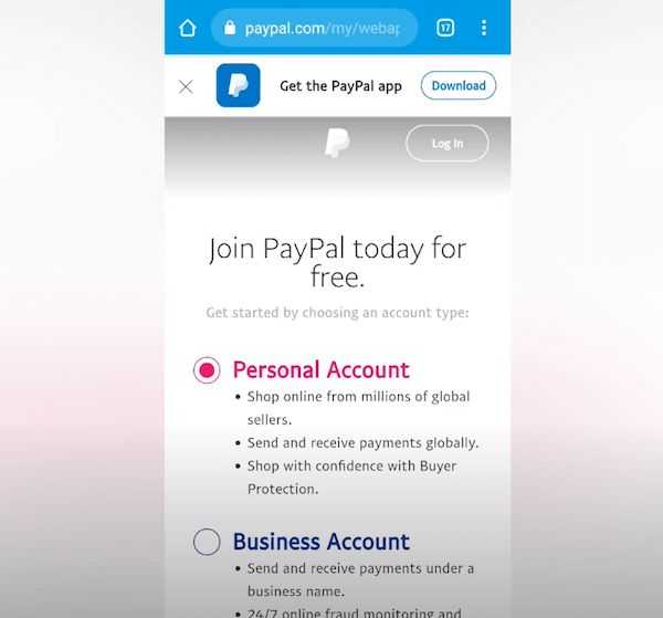 由于我们是新的用户,所以我们点击注册,这里会出现两种选项,你可以选择个人账户或者商业账户,https://www.yundianseo.com/paypal/ 个人账户是推荐给那些在网上购物和付款的人,商业账户顾名思义就是给经营的商人或卖家: