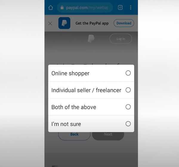 这里我们选择个人账户来注册。接着,会跳出4种选项,第一种是网上购物者,第二种是个人卖家和自由职业者,第三种是以上都有,第四种是不确定:
