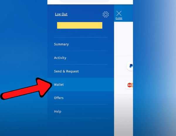 PayPal账户上有钱,怎么提现呢?同样,先点击菜单,然后我们点击“Wallet”: